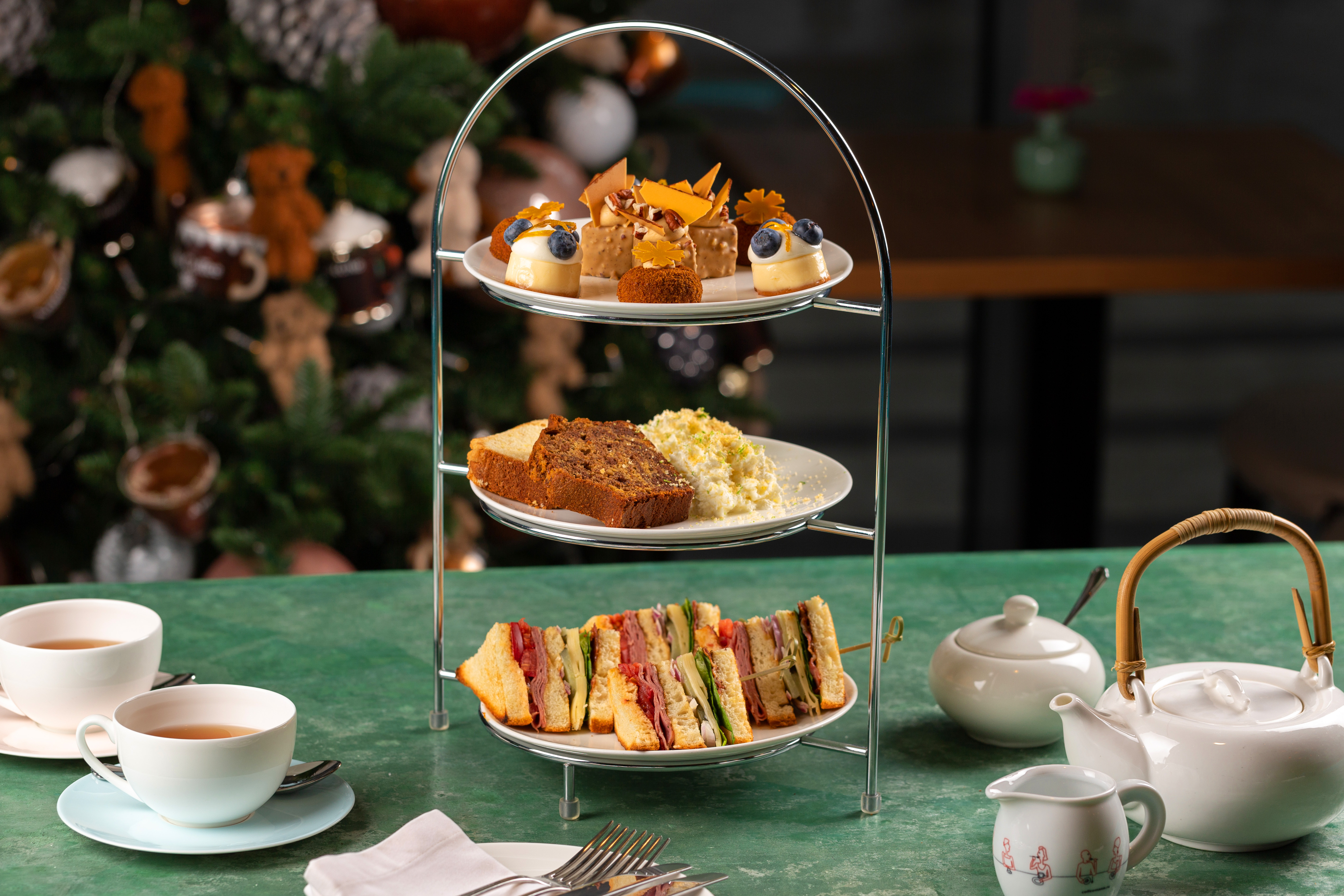 Меню чаепития рассчитано на двух человек: 2 кекса, 9 мини-десертов по 3 штуки каждого вида, клубный сэндвич и чайник чая на Ваш выбор.