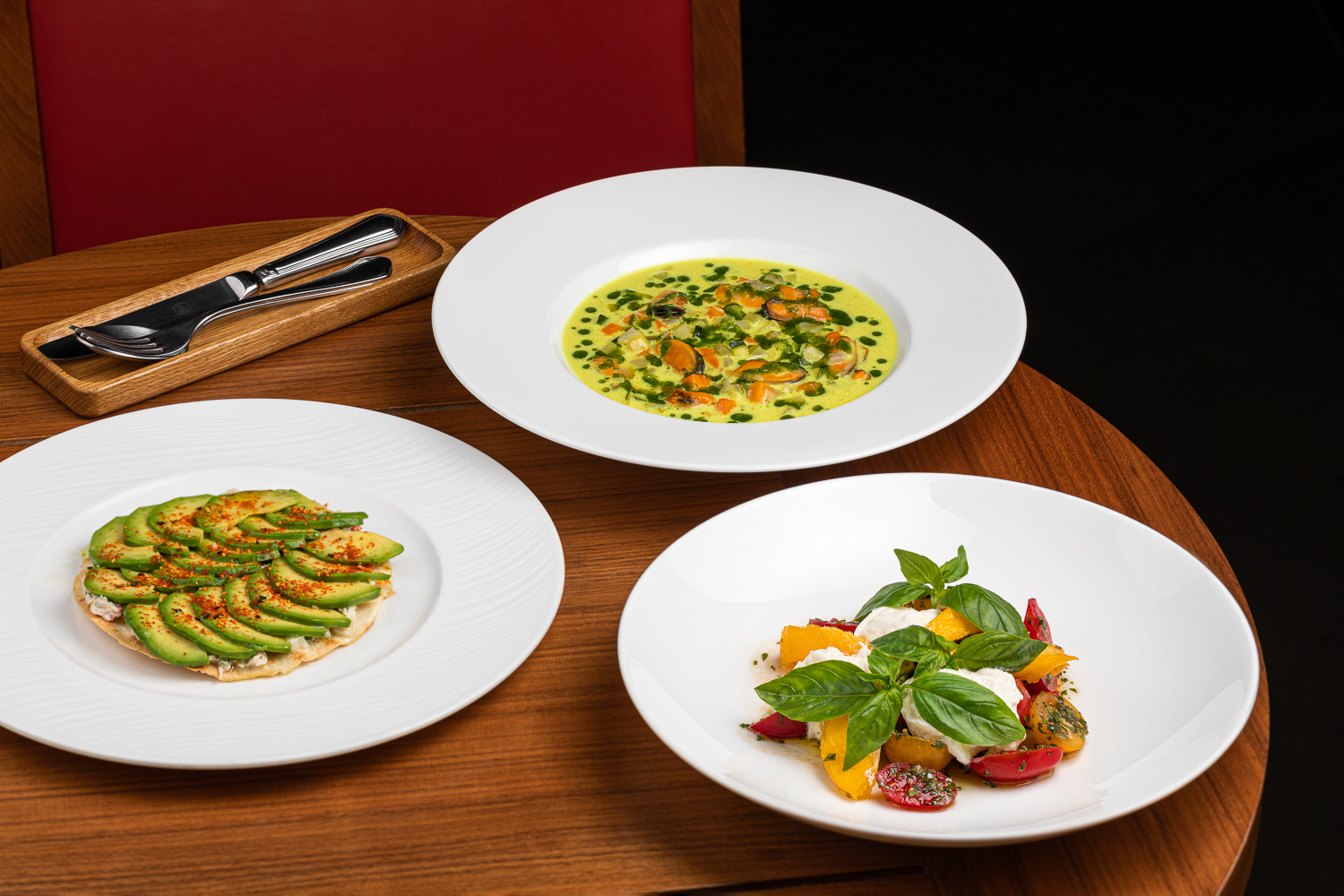 Свёклу приготовят в разных текстурах с цитрусовой заправкой с бурбонской ванилью, а жёлтый и зелёный цуккини – с брынзой и соусом из маринованного лимона с кедровыми орехами. Нежное мясо камчатского краба с его деликатным вкусом подадут в хрустящей тортилье вместе с авокадо и винегретом из лимонов.