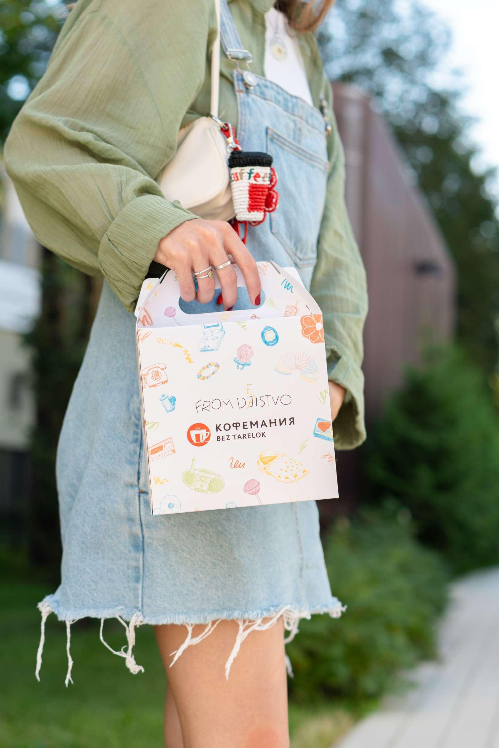 Наивный, будто нарисованный цветными карандашами, принт упаковки состоит из милых деталей, которые без труда узнают те, кто вырос в 90-е: Game Boy, чупа-чупса, браслета из конфет, Hubba Bubba, кнопочной Nokia и других атрибутов детства того времени.