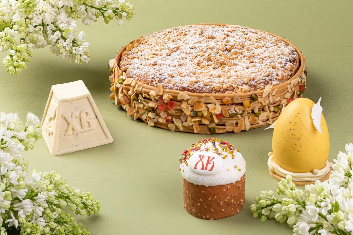Шеф-кондитер Елена Железнякова приготовила к празднику лимитированную коллекцию, посвящённую обязательным атрибутам пасхального застолья: яйцам, куличу и творожной пасхе. Десерт «Кулич» очень похож на традиционный, и лишь попробовав его, можно обнаружить ореховый бисквит с хрустящей прослойкой из пекана, мусс на карамельном шоколаде и ароматную банановую начинку в глазури из молочного шоколада.