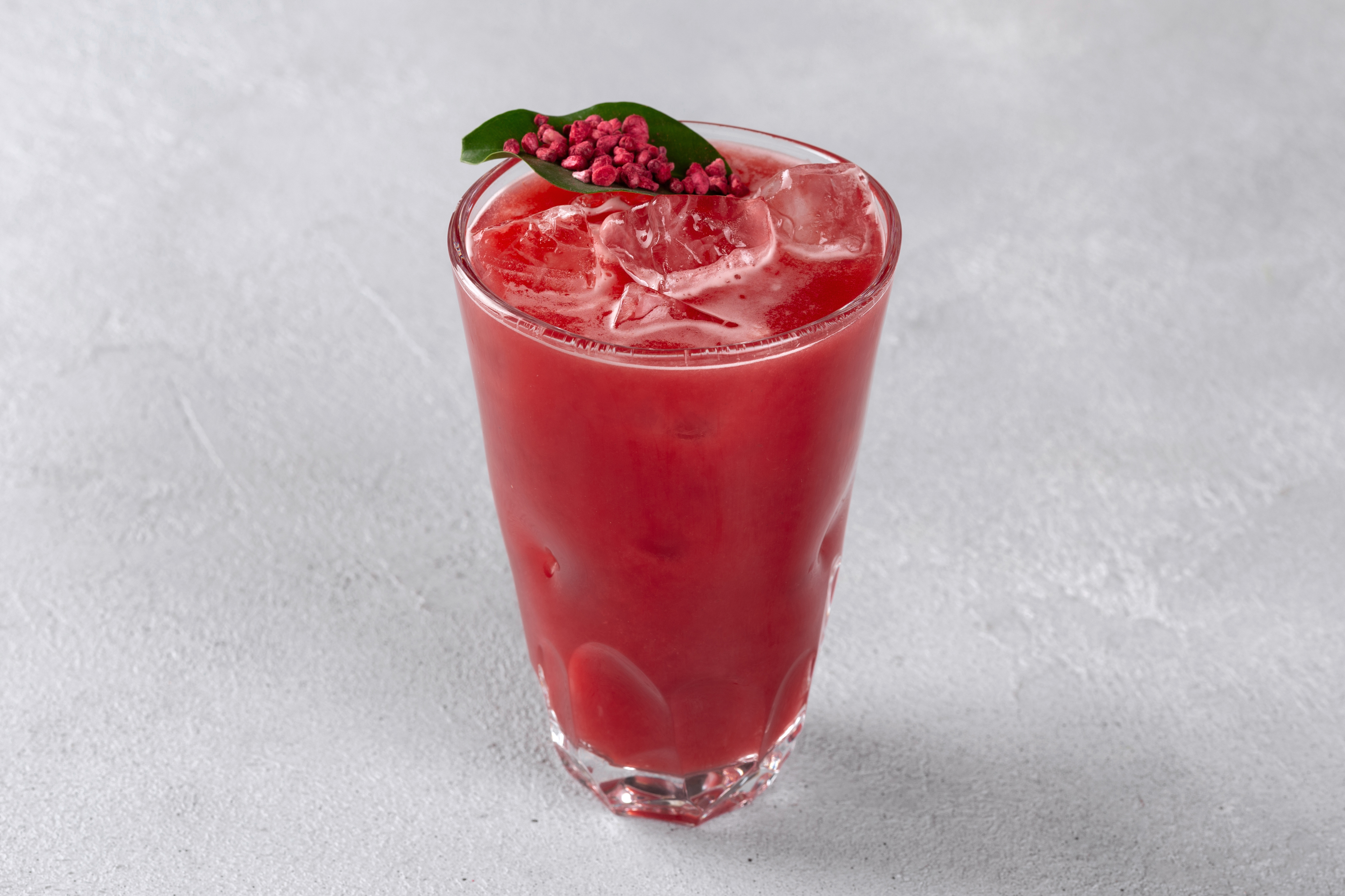Лимонад Вишня и ананас – полностью натуральный напиток со многосложным вкусом, который ему придают сразу шесть секретных ингредиентов. Сверху украшается лодочкой из листа лайма с сублимированной малиной. Попробуйте, чтобы распознать, какой вкусовой оттенок в большей степени преобладает для вас!