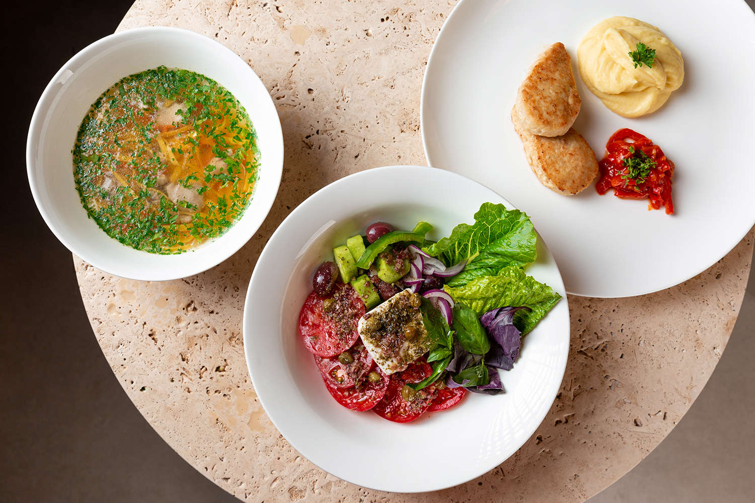Обедать с «Кофеманией» приятнее всего в стиле soul food – для этого мы придумали сет «Любимая классика». Греческий салат перенесёт в запомнившееся путешествие, куриный суп-лапша напомнит о бабушкиной уютной кухне, а котлета из индейки – о семейных встречах. В сет «Яркий вкус лета» мы включили молодые кабачки со сметаной, щавелевый суп и жареный рис с морепродуктами, а в сет «Бора-Бора» входят грибной суп, кесадилья с курицей и салат «Бора-Бора». Детский сет «Всё лучшее – детям» объединяет суп с фрикадельками, сочные котлетки из индейки и румяный блинчик.