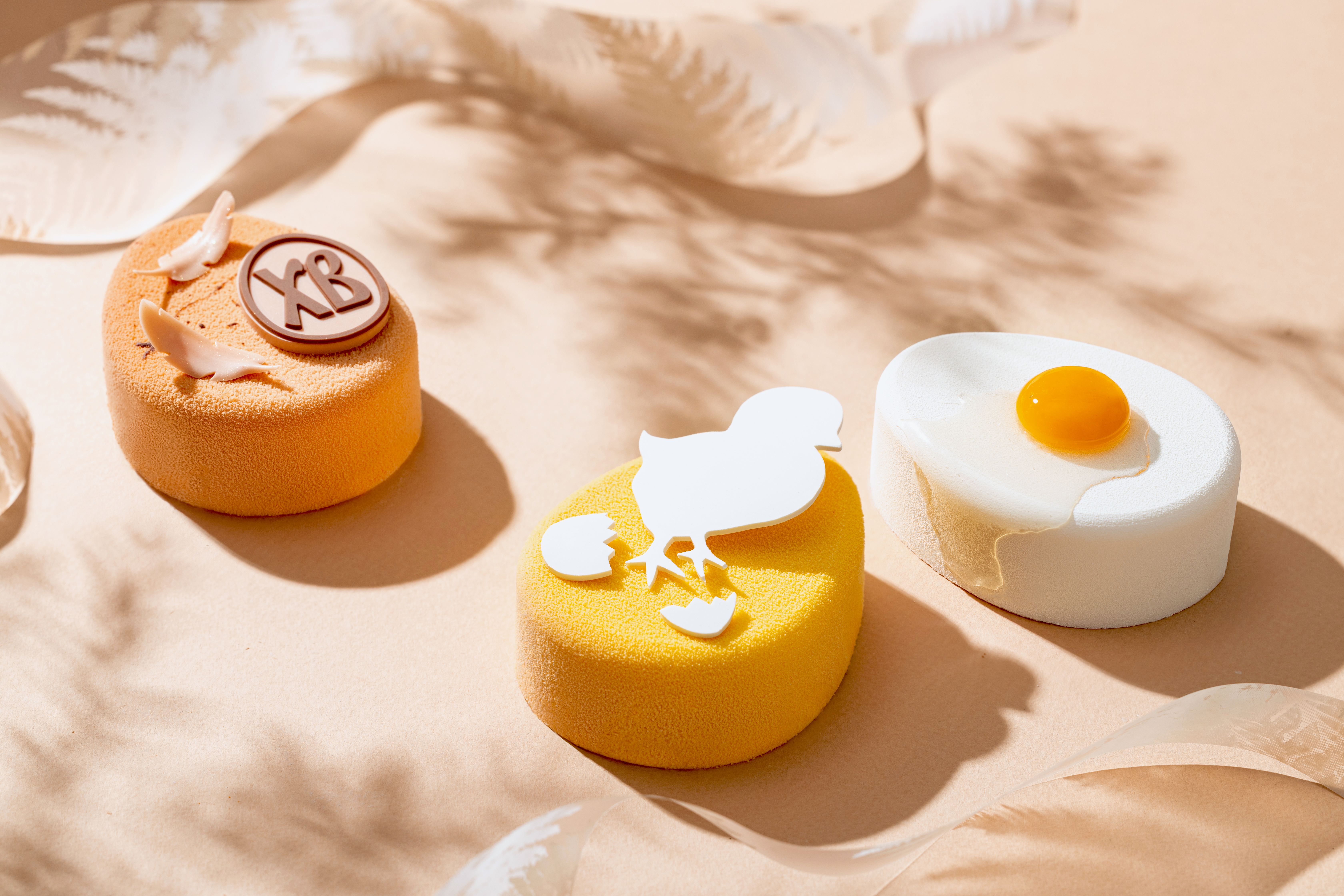 А внутри яркого «Пасхального цыплёнка» скрываются манговый бисквит и конфитюр из тропических манго и маракуйи, которые гармонируют с бананово-манговым кремом и банановым муссом.