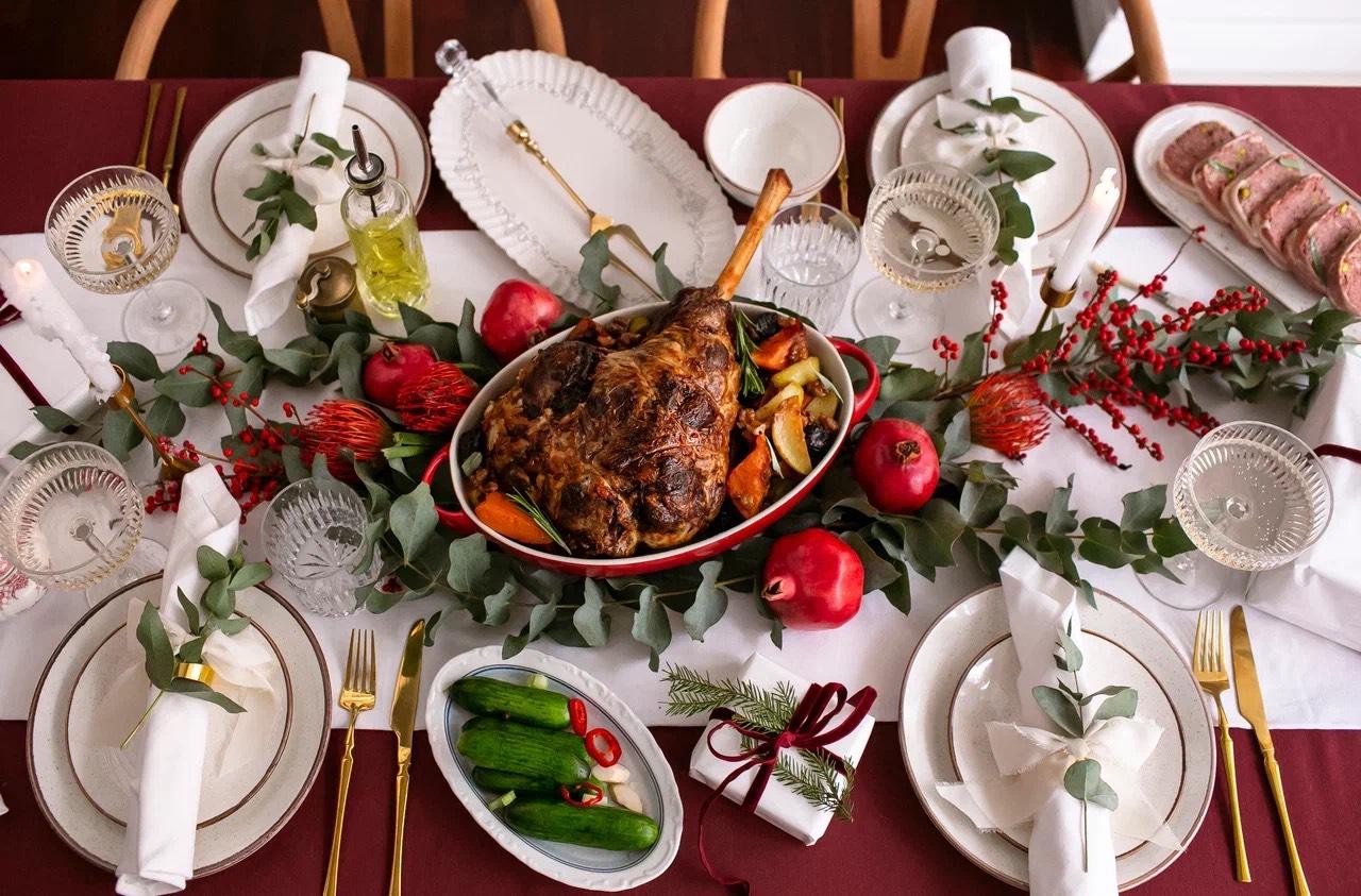 Бренд-шеф Алексей Петриченко подготовил разнообразное меню, в котором каждый найдёт себе блюдо по вкусу. Среди салатов — традиционные «Мимоза», «сельдь под шубой» и, конечно же, «оливье»: классический с ветчиной или версия для гурманов с крабом. На закуску идеальным выбором станут пате террин из говяжьей грудинки с изюмом и фисташками, холодец из телятины, утка холодного копчения и домашние малосольные огурцы, а для любителей рыбы — слабосолёный лосось со свежим чёрным трюфелем, копчёный кижуч и рийет из сардин. В качестве основных блюд для торжественного застолья рекомендуем заказать утиные ножки конфи с тыквой, яблоками и грецкими орехами, фаршированную ногу барана с соусом терияки или утку по-пекински.